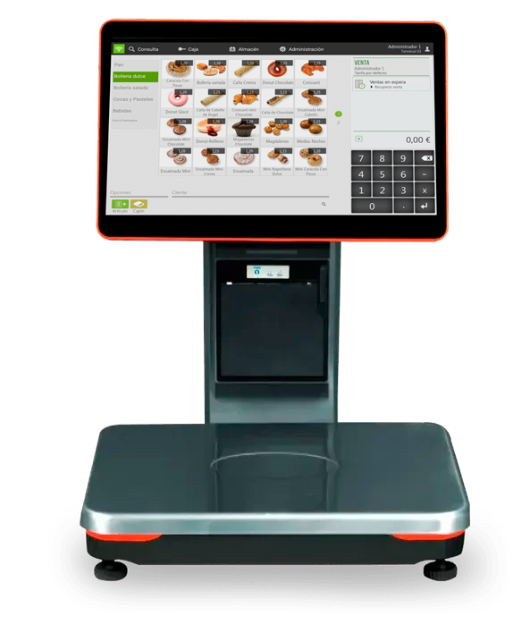 Nuestra terminal con báscula integrada es la solución perfecta que proporciona la máxima precisión. Desde el mismo terminal, podrás gestionar todos tus productos, imprimir tickets y enlazar con PinPad u otros dispositivos, controlar las ventas a crédito con lo que agilizará tu proceso de venta y garantizará la satisfacción de tus clientes.